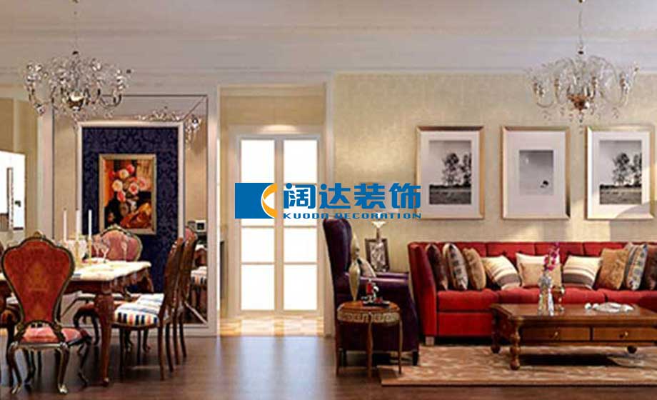 本案設計風格為歐式風格,營造典雅、自然、高貴的氣質、浪漫的情調是本案的主題。生活在繁雜多變的世界里已是煩擾不休,而自然的生活空間卻能讓人身心舒暢,感到寧靜和安逸;借著室內空間的解構和重組,便可以滿足我們對悠然自得的生活的向往和追求,讓我們在紛擾的現代生活中找到平衡,締造出一個令人心馳神往的寫意空間。客廳、餐廳:客廳、餐廳背景墻和沙發背景墻是整個房間的設計亮點,因為這兩面墻是一進入戶門正對的兩面墻,在材質的運用上選擇鏡面,是想把空間延伸,在簡單中帶著造型,緊扣簡歐風格的主題