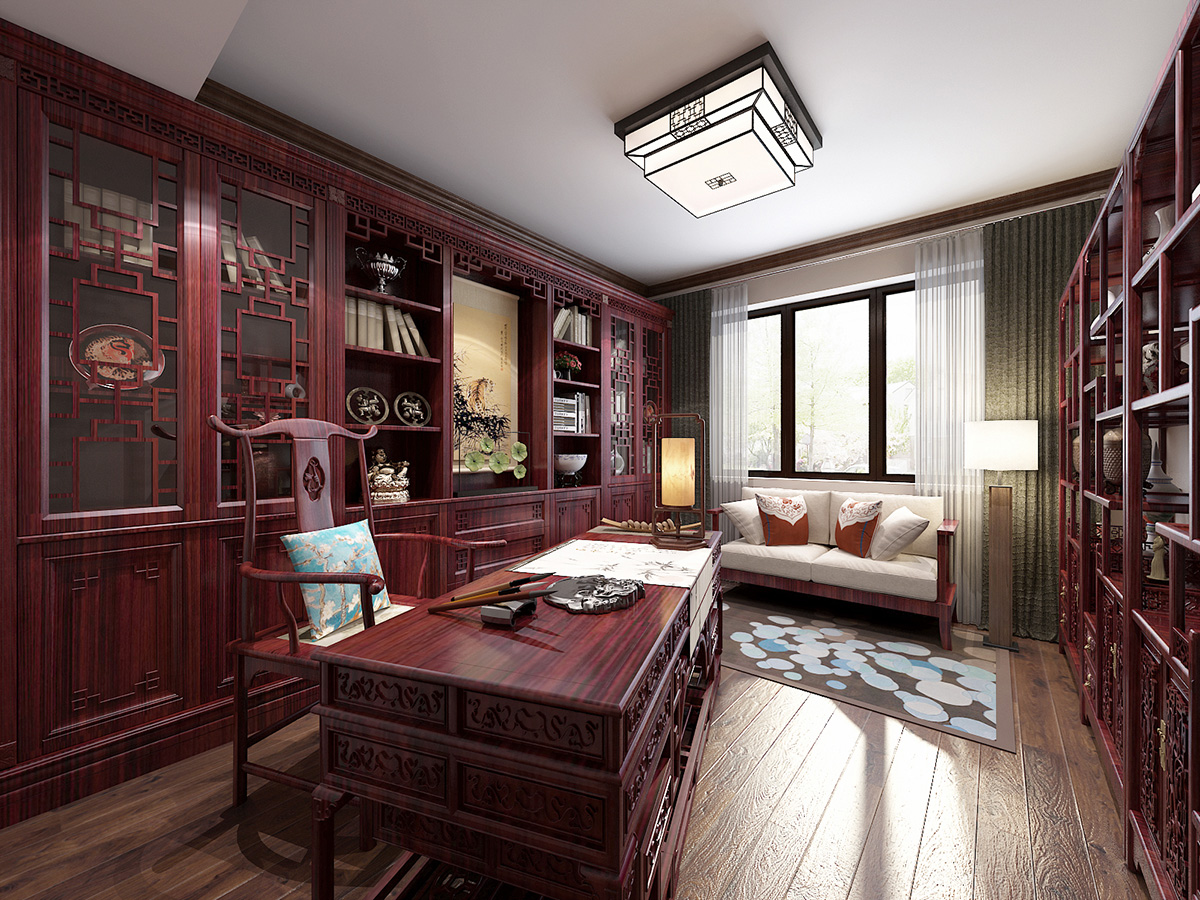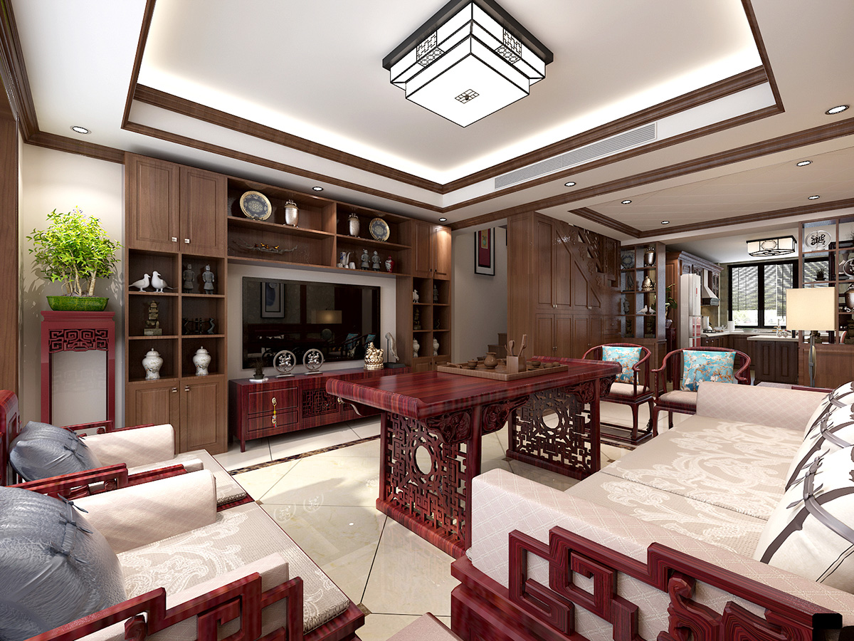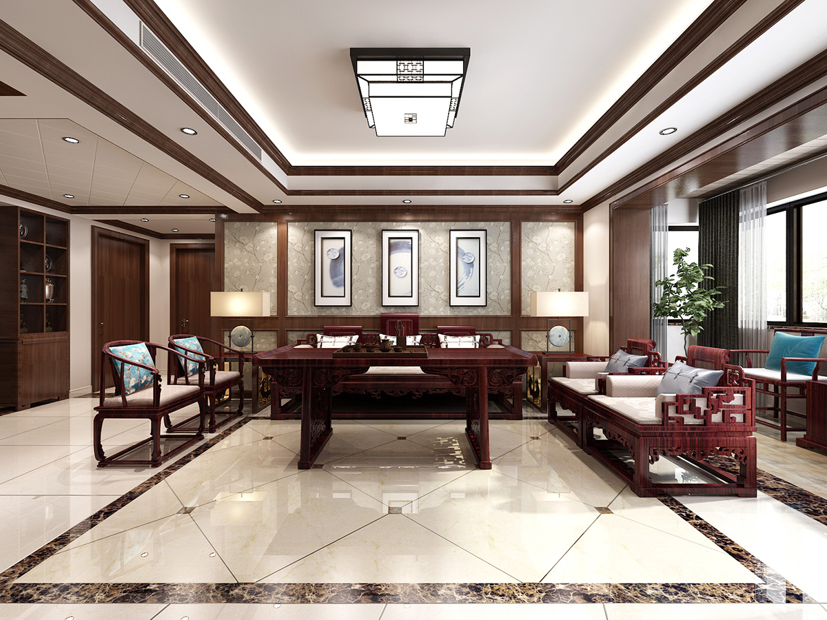 室內(nèi)多采用對稱式的布局方式,格調(diào)高雅,造型樸素優(yōu)美,色彩濃厚而成熟。空間上講究層次,多用隔窗、屏風來分割,用實木做出結實的框架,以固定支架,中間用欞子雕花,做成古樸的圖案。一般都以木結構為主,中式風格都會比較對稱。另外會增加國畫、字畫、掛飾畫等做墻面裝飾,另外會增加些盆景以求和諧。