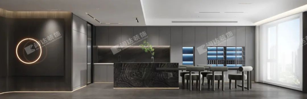 餐廳是家人情感的重要鏈接之處,采用中西廚一體的設計手法,最大化利用空間,將餐廳與西櫥一以貫之,增加空間的互動性,屋內光線通透,視線開闊,更能增進家人間的溝通與情感。