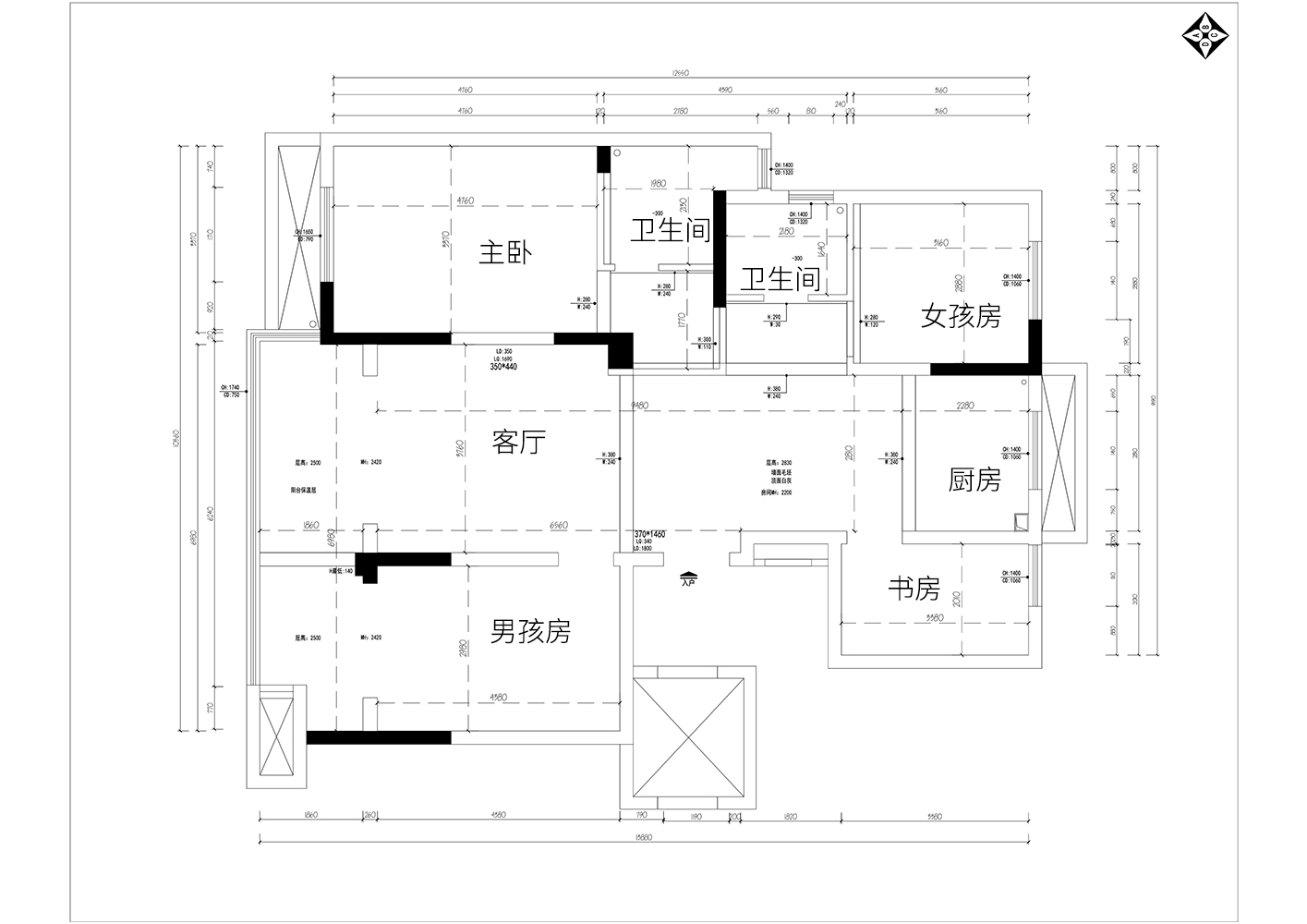 本案戶型缺陷:1、業(yè)主家有一兒一女,雖然有兩個衛(wèi)生間,功能分配并不合理。