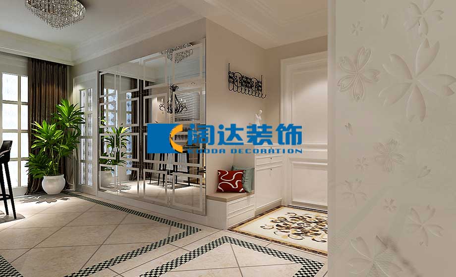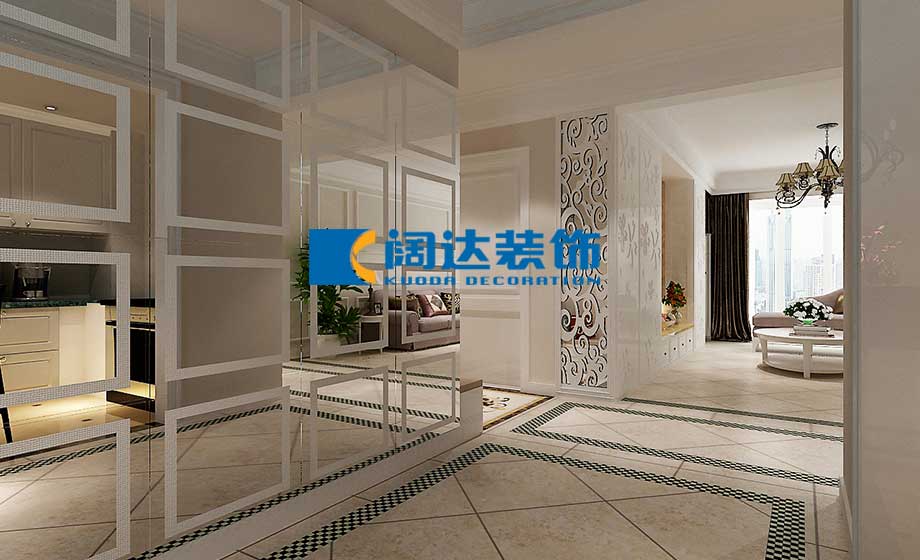 本案的主題思路圍繞簡奢、實用這兩個關鍵詞,目的是為了營造出富有簡奢氛圍的家居空間,可以讓人在這個空間里能夠感受到細致奢華的氛圍,并且簡歐風格在延續(xù)歐式奢華的同時舍棄了一些紛繁復雜的造型和光怪陸離的氣息,體現(xiàn)了年輕業(yè)主對精致生活的期許。客廳: 簡約之風為主,背景墻運用精致花格和石材的搭配組合,制造出簡奢的電視墻質感,并且充分利用客廳的原有跨度,從原有電視墻起做了一個隱藏式衣柜,再用表面的花格柜門做裝飾,這樣就同時兼顧了實用性和裝飾性。 臥室:簡潔的燈帶造型加之慵懶氣息的軟臥配飾,彰顯溫馨舒適的休憩氛圍。