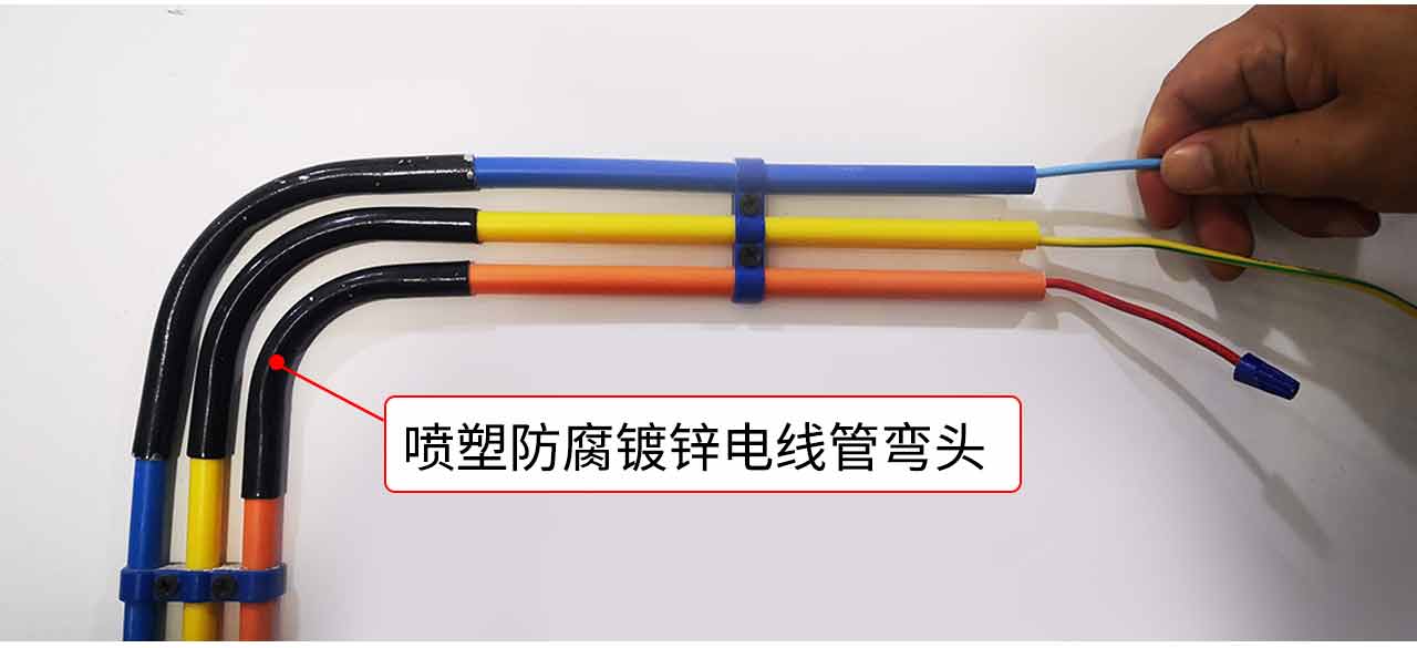 地面走管向墻體敷設時,應使用專用噴塑防腐鍍鋅電線管彎頭過渡。禁止不使用專用彎頭或直接彎曲,避免電線管變形,影響穿線和換線。